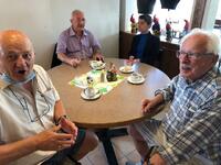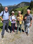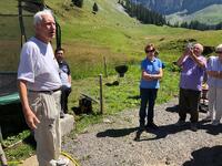 Die Wanderer wählten auf dem Rückweg die Route über Milchbüelen auf schönen Alpweiden und herrlichem Bergpanorama nach der Seilbahn-Talstation, wo sie planmässig um 17.00 Uhr eintrafen, mehrheitlich tüchtig schwitzend und müde. Die andern wurden wieder per Auto nach Schwarzenbach zurückfahren, wobei ein Halt nahe des «Heimetli» Obere Windegg eingeschaltet wurde. Einige liessen es sich nicht nehmen, den 200 Meter langen Trampelweg hinauf zum Wohnhaus der Familie von Marion und Thomas zu begehen, was kein Spaziergang war. Die andern konnten von Haus und Stall aus der Nähe Einsicht nehmen. - Von Schwarzenbach aus reisten alle im Car nach Zürich-Leimbach zurück, beladen mit vielen schönen Eindrücken und Erlebnissen.