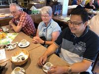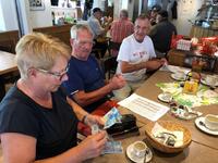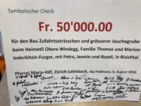 Im Nu verflog die Zeit, und wir mussten ans Abschiednehmen denken . – Allen vier Helferinnen konnten wir als Dank für ihre grossen Vorbereitungsarbeiten, ihren Dienst in der Küche und das feine Essen ein Geschenk überreichen, und den Gastgebern übergaben wir einen symbolischen Check von Fr. 50'000, entsprechend dem Resultat unserer bisherigen Sammelaktionen und bestimmt fürs erwähnte Bauvorhaben. Selbstverständlich wollten wir die Familie für ihre Auslagen und die grosse Arbeit auch finanziell entschädigen, dafür konnte ein runder Betrag übergeben werden.
